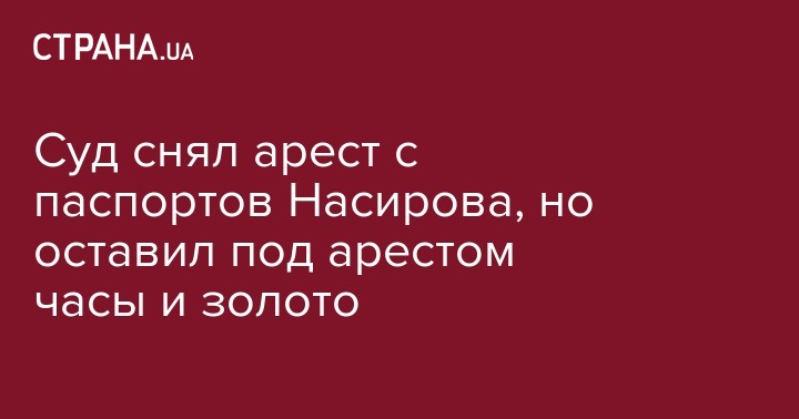 Апелляционный суд Киева снял арест с паспортов и оставил под арестом коллекцию часов, деньги и золото отстраненного председателя Государственной фискальной службы (ГФС) Романа Насирова.