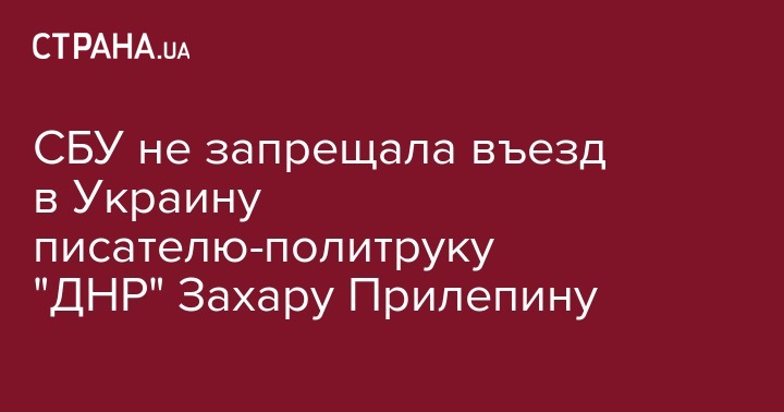Служба безопасности Украины не выносила решение о запрете въезда в Украину российскому писателю Евгению (Захару) Прилепину, поддерживающему боевиков самопровозглашенной "Донецкой народной республики". Об этом сообщают "Украинские новости" со ссылкой на эксклюзивный ответ СБУ.