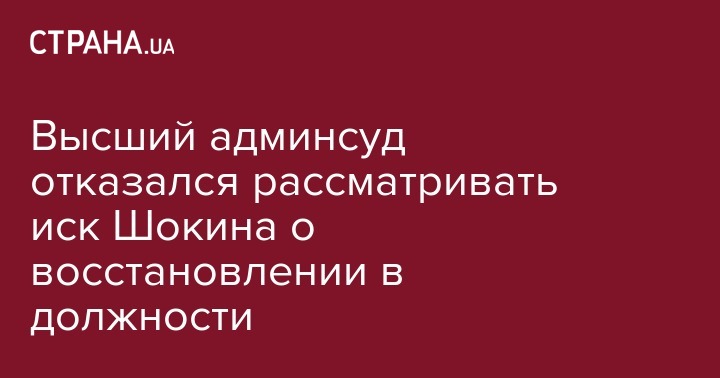 Высший админсуд отказался рассматривать иск Шокина о восстановлении в должности