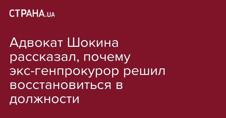 Адвокат Шокина рассказал, почему экс-генпрокурор решил восстановиться в должности