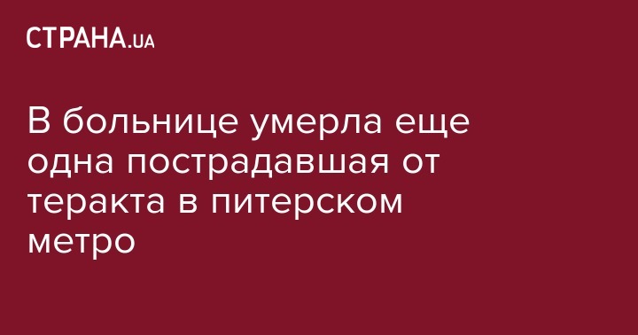 В больнице умерла еще одна пострадавшая от теракта в питерском метро