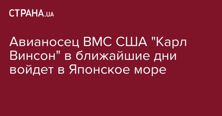 Флагманский авианосец "Карл Винсон", который направляется к Корейскому полуострову, войдет в Японское море до конца апреля. Об этом сообщает AFP.