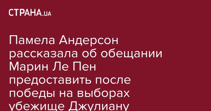 Памела Андерсон рассказала об обещании Марин Ле Пен предоставить после победы на выборах убежище Джулиану Ассанжу