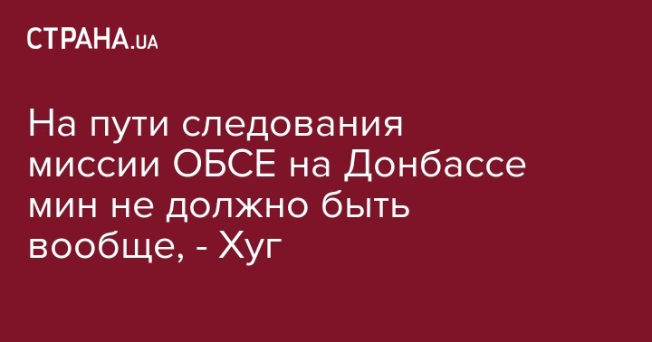 На пути следования миссии ОБСЕ на Донбассе мин не должно быть вообще, - Хуг