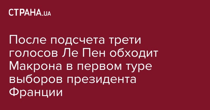 После подсчета трети голосов Ле Пен обходит Макрона в первом туре выборов президента Франции
