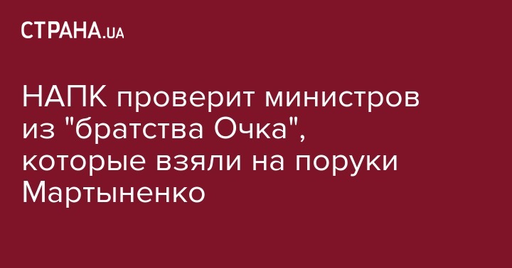 Национальное агентство по предотвращению и противодействию коррупции на основании постановления Соломенского райсуда Киева даст оценку действиям министров, взявших на поруки экс-депутата от "Народного фронта" Николая Мартыненко. Об этом в Facebook заявила глава НАПК Наталья Корчак.