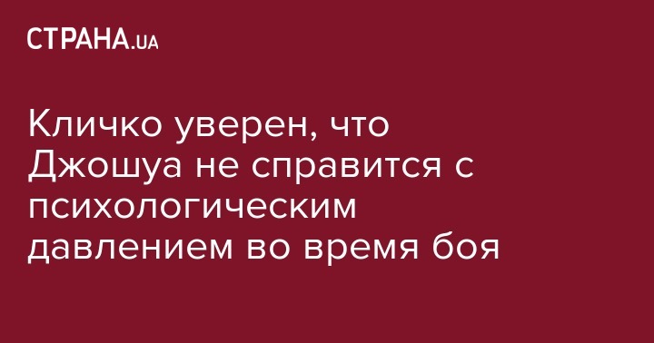 Украинский боксер Владимир Кличко предполагает, что его соперник Энтони Джошуа может не справиться с психологическим давлением во время поединка. Об этом пишет "Братство Кличко"