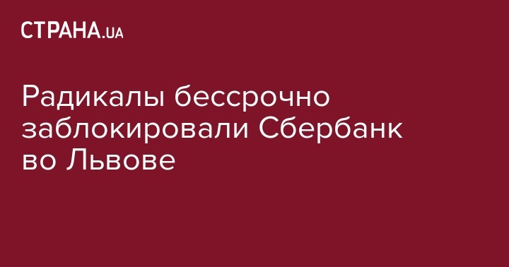 Активисты партии "Национальный корпус" начали с 25 апреля бессрочное блокирование отделения украинской "дочки" "Сбербанка России" во Львове. "Национальный корпус" … по адресу проспект Черновола, 2Б, своей акцией запускает бессрочную блокаду … во Львове", - говорится в сообщении партии на странице в Facebook во вторник.