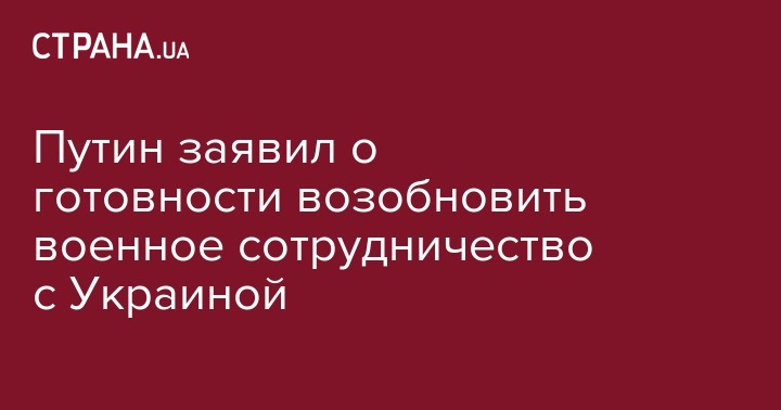 Президент России Владимир Путин считает возможным возобновить военно-техническое сотрудничество с Украиной. "Мы готовы будем при возможности, которая от нас не зависит, вернуться к кооперации с нашими партнерами и в этих сферах, важно только, чтобы были созданы для этого соответствующие условия", — сказал он.