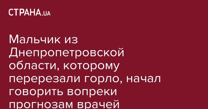 Мальчик из Днепропетровской области, которому перерезали горло, начал говорить вопреки прогнозам врачей