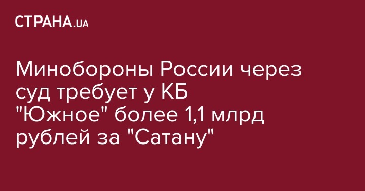 Минобороны России через суд требует у КБ "Южное" более 1,1 млрд рублей за "Сатану"