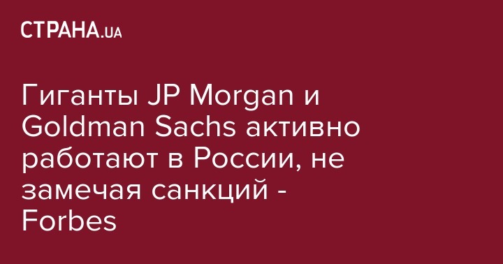 Американские фирмы вновь привлекает "большой плохой российский рынок капитала. Об этом пишет Кеннет Рапоза в статье "Какие санкции? JP Morgan и Goldman Sachs в топ-3 инвестиционных банков в России", опубликованной на сайте газеты Forbes.