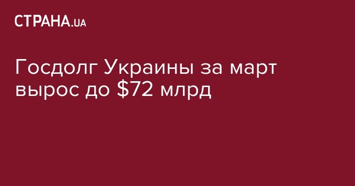 До $72,35 млрд вырос за март совокупный государственный (прямой и гарантированный) долг Украины. Об этом говорится в сообщении Министерства финансов.
