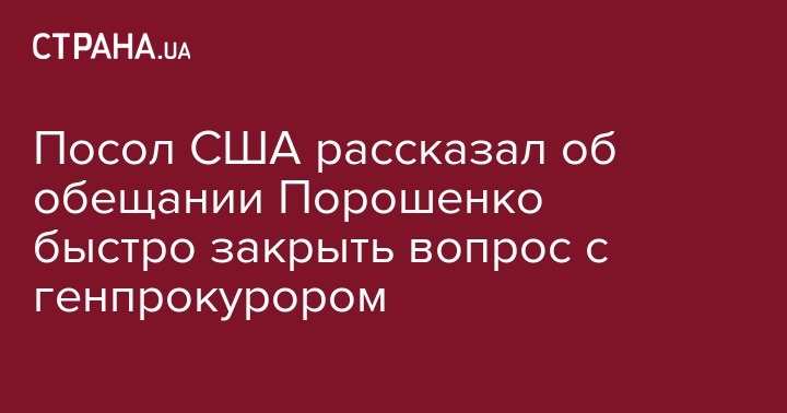 Президент Украины Петр Порошенко заверил американские власти, что намерен быстро решить вопрос с назначением нового независимого, профессионального генерального прокурора. Как передает"Интерфакс-Украина" об этом заявил посол США в Украине Джефри Пайетт.