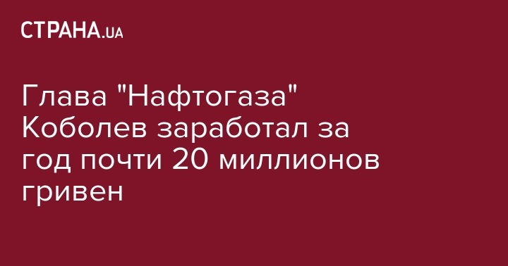 Глава правления Национального нефтегазового холдинга "Нафтогаз Украины" Андрей Коболев в 2016 году получил 19,3 миллиона гривен доходов в форме заработной платы и других выплат по трудовому договору, с которых он заплатил 3,5 миллиона гривень налога на доходы физических лиц.