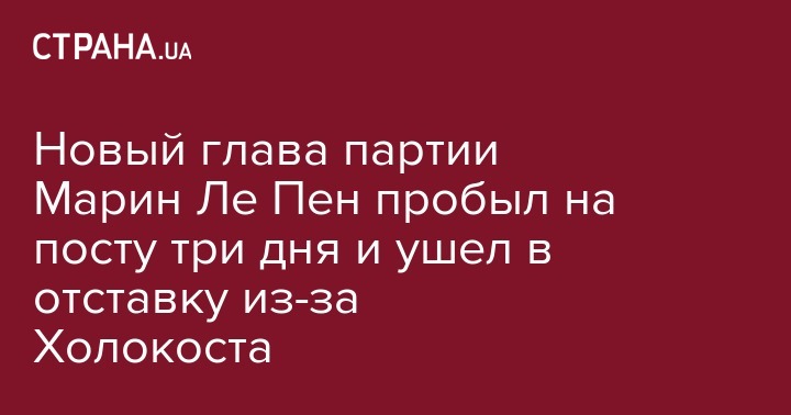 Новый глава партии Марин Ле Пен пробыл на посту три дня и ушел в отставку из-за Холокоста