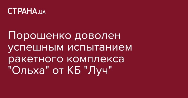 Президент Украины Петр Порошенко поздравил ГП "Государственное киевское конструкторское бюро "Луч" с успешным испытанием ракетного комплекса "Ольха". Об этом глава государства написал на своей странице в Facebook.
