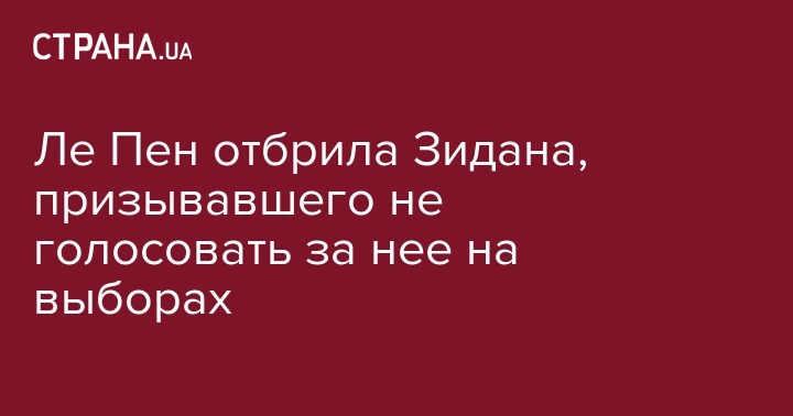 Кандидат в президенты Франции Марин Ле Пен ответила Зинедину Зидану, который призвал французов не отдавать свои голоса за лидера "Национального фронта". Об этом сообщает телеканал BFMTV.