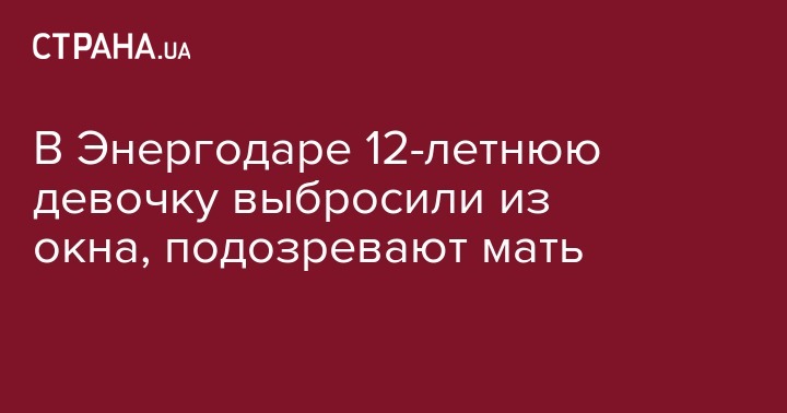 30 апреля в Энергодаре Запорожской области из окна квартиры на девятом этаже выбросили 12-летнюю девочку, которая погибла. Местные СМИ сообщают, что подозреваемой является мать подростка. Об этом сообщает "РосТ.Info".