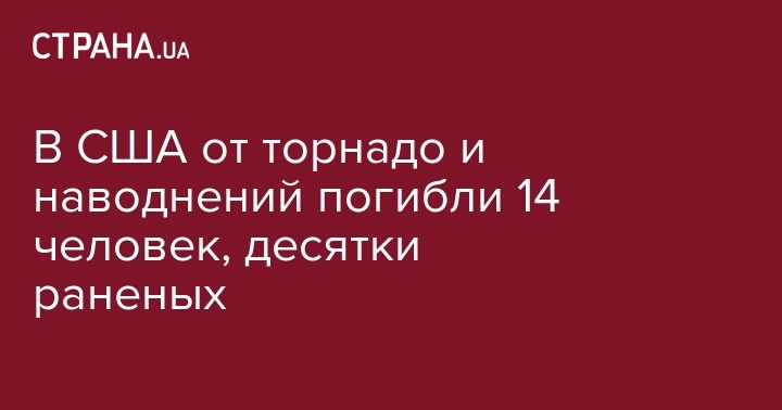 В США ураганы и наводнения на юге и среднем западе страны убили не менее 14 человек, десятки людей получили травмы. Об этом пишет портал DW.