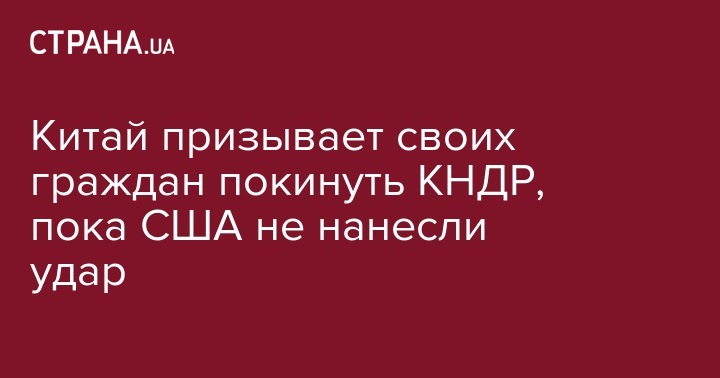 Китайское посольство в Северной Корее призвало своих граждан покинуть территорию страны из-за опасений удара США по полуострову. Об этом сообщило радио Free Asia со ссылкой на источник, передает "Лайф".