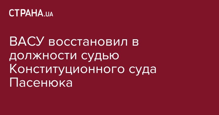 Высший административный суд Украины (ВАСУ) восстановил в должности судью Конституционного суда Александра Пасенюка, который был уволен Верховной Радой с должности в июле 2016 года.