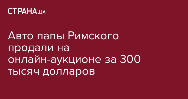 Автомобиль Папы Римского Франциска черный Fiat 500 Lounge, который он использовал во время своего визита в США, продали за 300 тысяч долларов на онлайн-аукционе, открытого еще 17 марта. Начальная цена лота составляла 10,5 тысяч долларов, после чего быстро подскочила. Об этом сообщает Русская служба BBC.