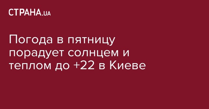 В Киеве пятница пройдет солнечно и без осадков. Температура ночью +7..+7 градусов, днем +20..+22 градуса.
