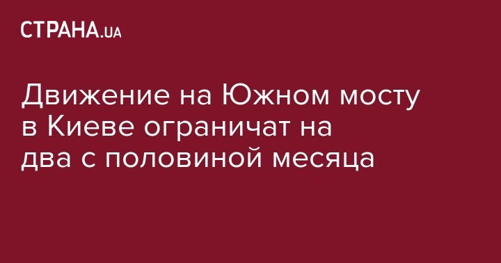 "Киевавтодор" предупреждает, что из-за работ по благоустройству, в течение двух с половиной месяцев на Южном мосту возможны ограничения движения транспорта. Об этом сообщается на сайте КГГА.