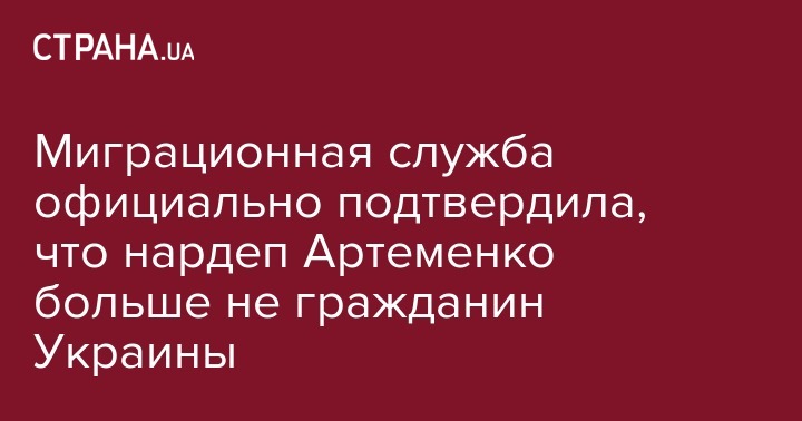 "В соответствии с указом президента Украины народный депутат потерял гражданство Украины. Материалы в отношении народного депутата Украины Андрея Артеменко предоставлены Генеральной прокуратурой Украины через Министерство внутренних дел Украины, проработаны Государственной миграционной службой Украины и направлены на рассмотрение Комиссии по вопросам гражданства при президенте Украины, в установленном порядке рассмотрены на заседании Комиссии 25.04.2017", - сообщили в ведомстве.