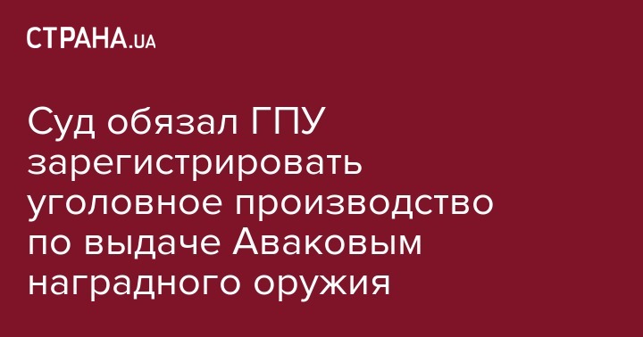 Печерский районный суд Киева обязал Генеральную прокуратуру зарегистрировать уголовное производства по фактам нарушений министром внутренних дел Арсеном Аваковым законодательства при вручении наградного огнестрельного оружия.