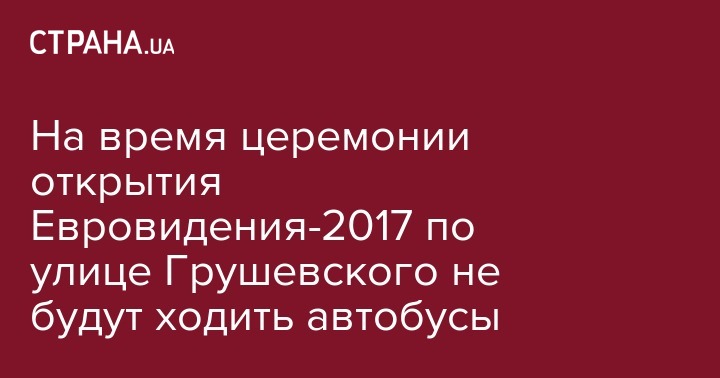На время церемонии открытия "Евровидения-2017" с 24:00 6 мая до 24:00 7 мая вносятся изменения в движение транспорта на ул. Михаила Грушевского, на участке от Парковой дороги до ул. Ивана Мазепы.