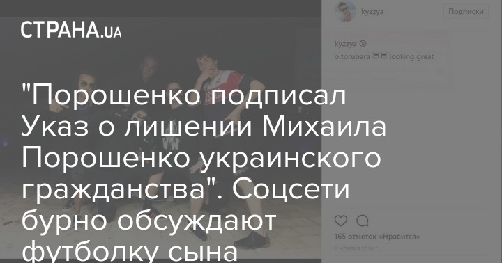 "Порошенко подписал Указ о лишении Михаила Порошенко украинского гражданства". Соцсети бурно обсуждают футболку сына президента с надписью Russia