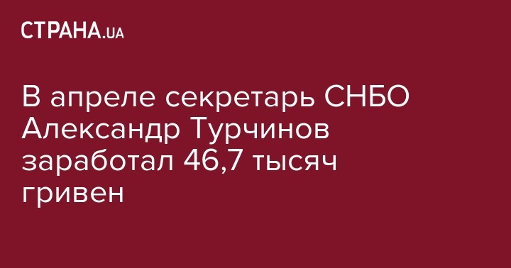 Заработная плата секретаря Совета национальной безопасности и обороны (СНБО) Александра Турчинова за апрель составила 46 705 гривен, а его заместителей - от 41 524 гривны до 63 476 гривен. Об этом сообщают "Украинские новости".