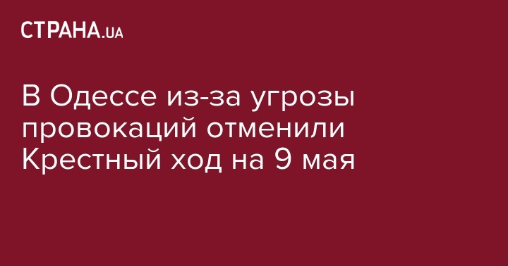 Из-за возможных провокаций в Одессе отменили Крестный ход, который должен был пройти 9 мая. Об этом на своей странице в Facebook сообщил председатель Миссионерского отдела Одесской епархии Олег Мокряк.