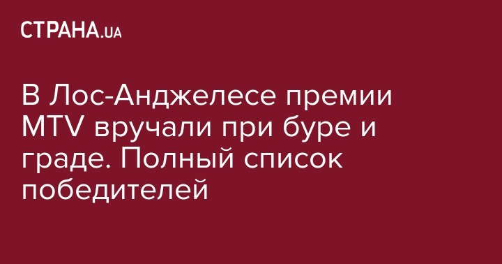 В воскресение, 7 мая, в Лос-Анджелесе состоялась 26-я церемония вручения премии MTV в области кино и телевидения (MTV Movie & TV Awards). Даже буря с градом, обрушившаяся на город, не стала помехой для раздачи статуэток в виде ведра с поп-корном.