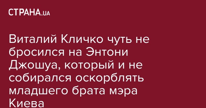 Британский боксер Энтони Джошуа, после победы над Владимиром Кличко, едва не подрался с его старшим братом Виталием Кличко. Об этом рассказал промоутер британского боксера Эдди Хирн.