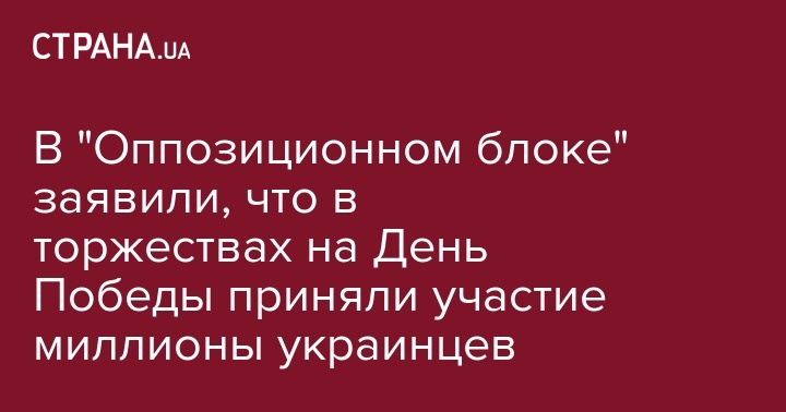 После празднования 9 мая Дня Победы партия "Оппозиционный блок" заявила о том, что в торжествах приняли участие миллионы украинцев. Об этом говорится в заявлении партии.