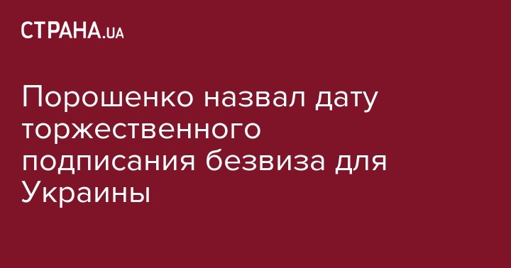 Президент Петр Порошенко 17 мая отправится в Страсбург, где состоится церемония подписания законодательного акта о предоставлении Украине безвизового режима. Об этом глава государства сообщил на своей странице в Facebook.