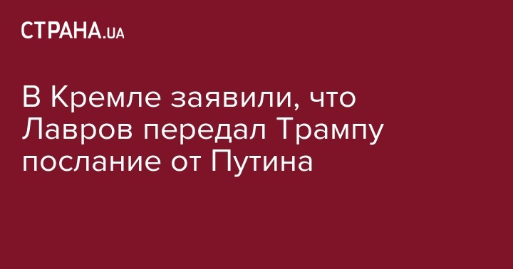 Министр иностранных дел России Сергей Лавров передал от президента Владимира Путина "послание" для президента США Дональда Трампа. Об этом журналистам рассказал пресс-секретарь президента России Дмитрий Песков, передает РБК.