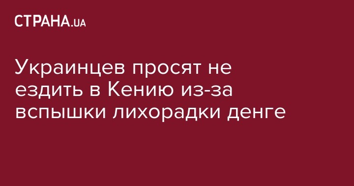 "В связи с обострением эпидемиологической ситуации в округе Момбаса, Республика Кения, связанной со вспышкой эпидемии лихорадки денге, МИД Украины рекомендует гражданам Украины, которые планируют свои путешествия за границу, воздержаться от посещения упомянутого округа, а тем, кто находится в округе, покинуть его до нормализации эпидемиологической ситуации", - говорится в сообщении.