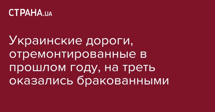 Украинские дороги, отремонтированные в прошлом году, на треть оказались бракованными