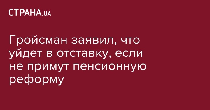 Премьер-министр Владимир Гройсман заявил, что готов уйти в отставку, если с 1 октября не будут повышены пенсии и не будет принята пенсионная реформа. Об этом он сказал в эфире телеканала "112 Украина".
