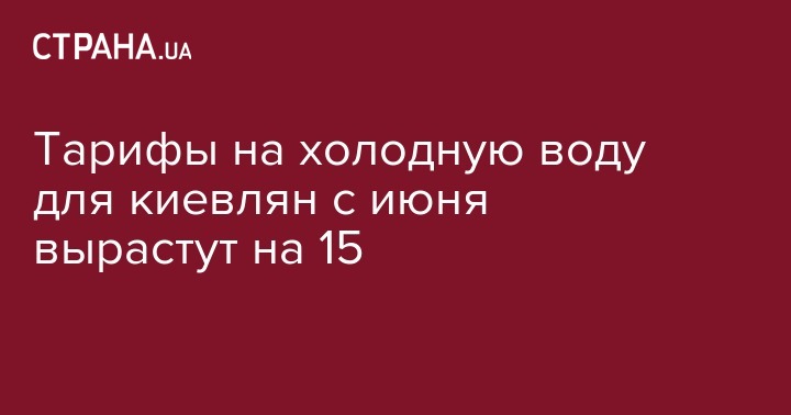 Национальная комиссия, осуществляющая регулирование в сфере энергетики и коммунальных услуг (НКРЭКУ), увеличила тариф на холодную воду для киевян на 14,7% или на 2,02 грн/ куб. м. Соответствующие постановления НКРЭКУ №551-552 от 26 апреля 2017 года было обнародовано в газете "Урядовый курьер" 11 мая, сообщает "Интерфакс-Украина".