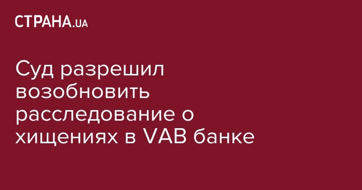 Шевченковский районный суд удовлетворил иск Национального банка Украины (НБУ) с требованием возобновить расследование о возможном хищении предоставленных ВиЭйБи Банку (VAB Банку) (Киев) кредитов рефинансирования, сообщается на странице центробанка в социальной сети Facebook.