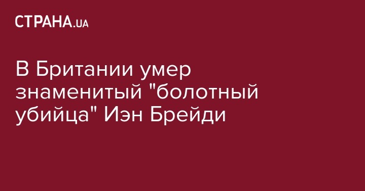 В Великобритании умер серийный убийца Иэн Брейди, который вместе с подругой Майрой Хиндли убил пять детей и прославился под именем "убийца с болот", поскольку тела двух жертв были найдены на болотах. Об этом сообщает Русская служба ВВС.