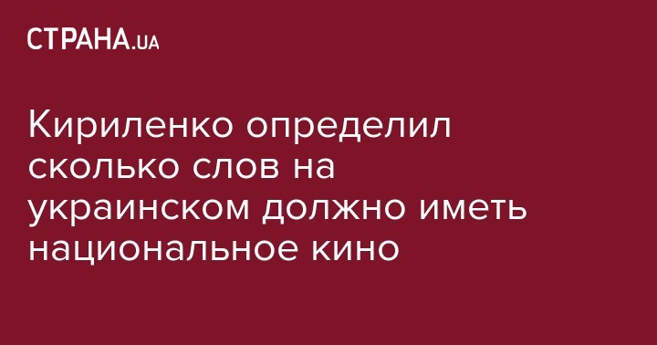 Вице-премьер-министр и министр культуры Вячеслав Кириленко выступает за признание национальными тех фильмов, которые имеют не менее 80% украиноязычных слов. Об этом вице-премьер сообщил в эфире "Украинского радио".