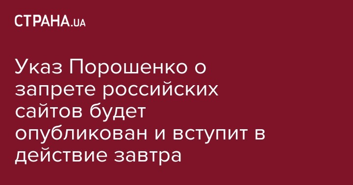 Указ Порошенко о запрете российских сайтов будет опубликован и вступит в действие завтра