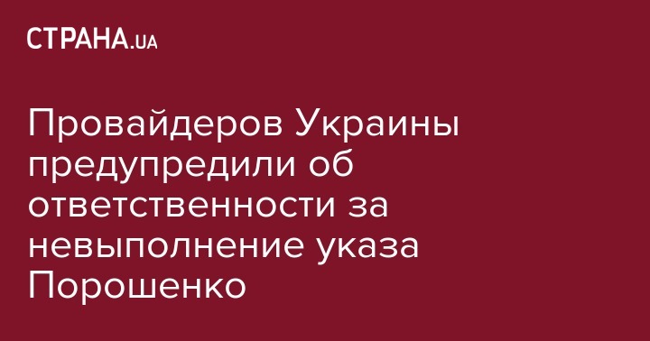 Украинские интернет-провайдеры получили предупреждении об административной ответственности и наложении штрафа за невыполнение указа Порошенко №133/2017, которым вводятся санкции против ряда компаний.