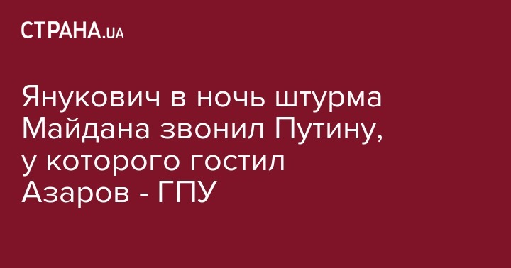 Генпрокуратура установила, что в ночь на 19 февраля 2014 года, когда силы "Беркута" начали разгон Евромайдана, экс-президент Виктор Янукович два раза разговаривал по телефону с Владимиром Путиным, у которого как раз находился тогдашний премьер Николай Азаров.